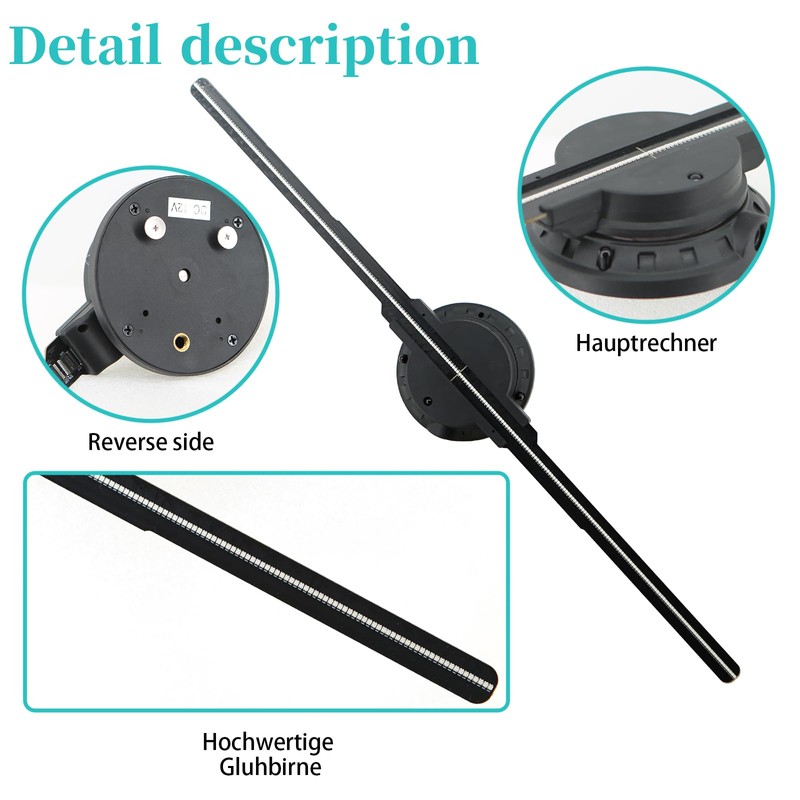 - Unparalleled Quality:The Fan Features 302 High-Definition LEDs That Produce Sharp, Clear Images At A Resolution Of 2000*1444. The Hologram Fan's Sleek, Modern Design Not Only Looks Great But Also Enhances Its Durability