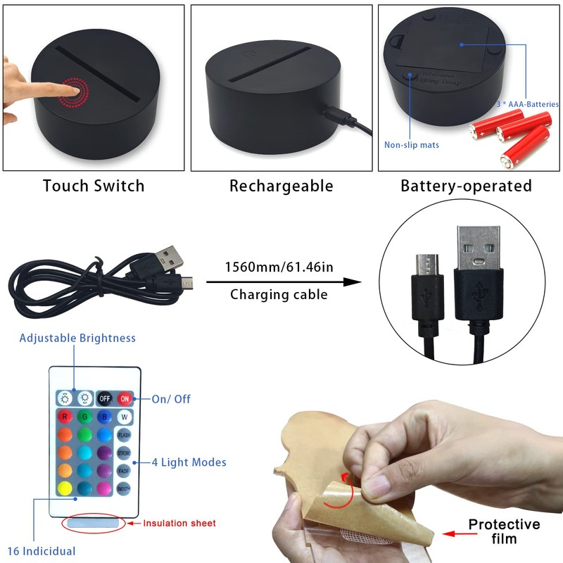 - Creative visual LED effect: the 3D night light uses a creative optical laser engraving acrylic plate that looks like a 3D etching line in night lighting. The three-dimensional illusion effect makes your room more unique and warm and helps you sleep more firmly! Note: 3D light is only a visual effect. The lamp itself is flat, not 3D.