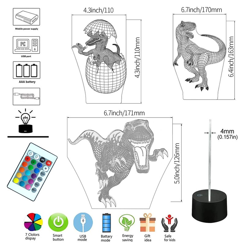 - Perfect gift: children's night light would be perfect party accessories, children's dinosaur gifts, children's toys, toddler gifts, birthday gifts, Thanksgiving gifts, graduation gifts, Christmas gifts for children, baby, toddlers, friends. Ideal home decor, bedroom decoration, children's room decoration, baby room decoration, etc.