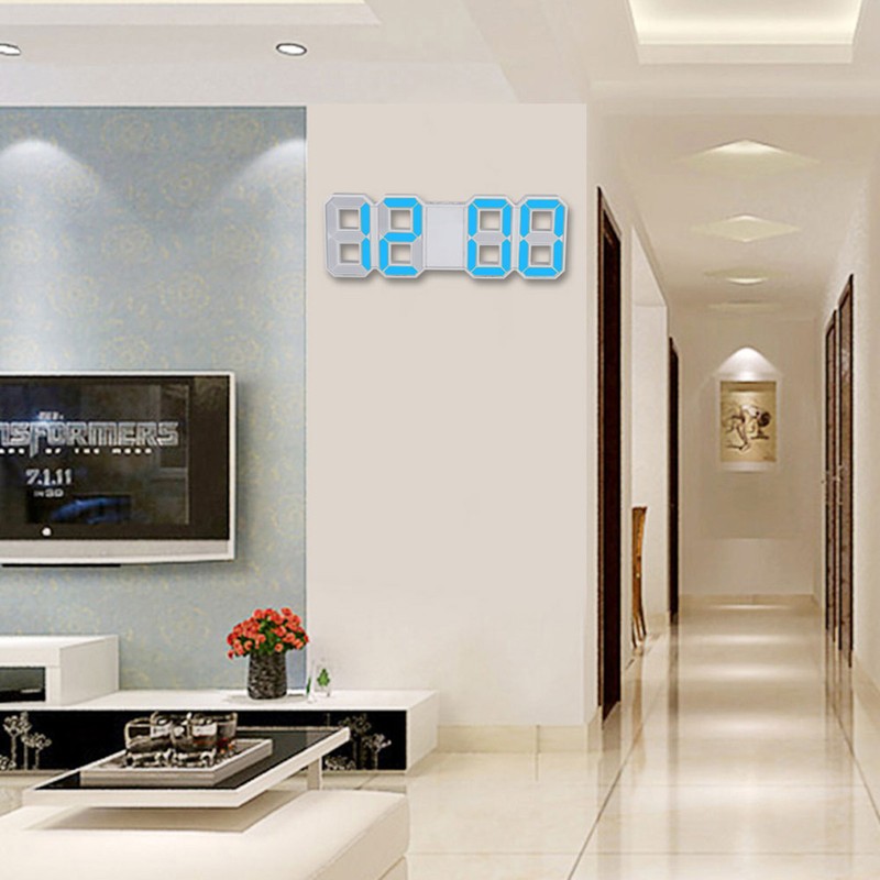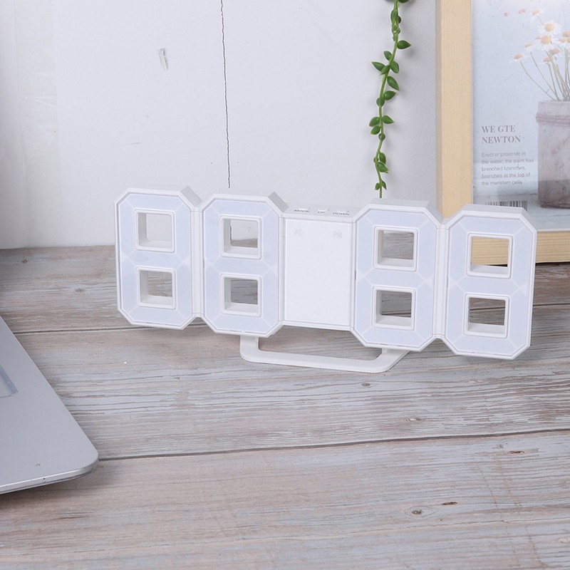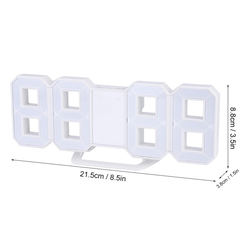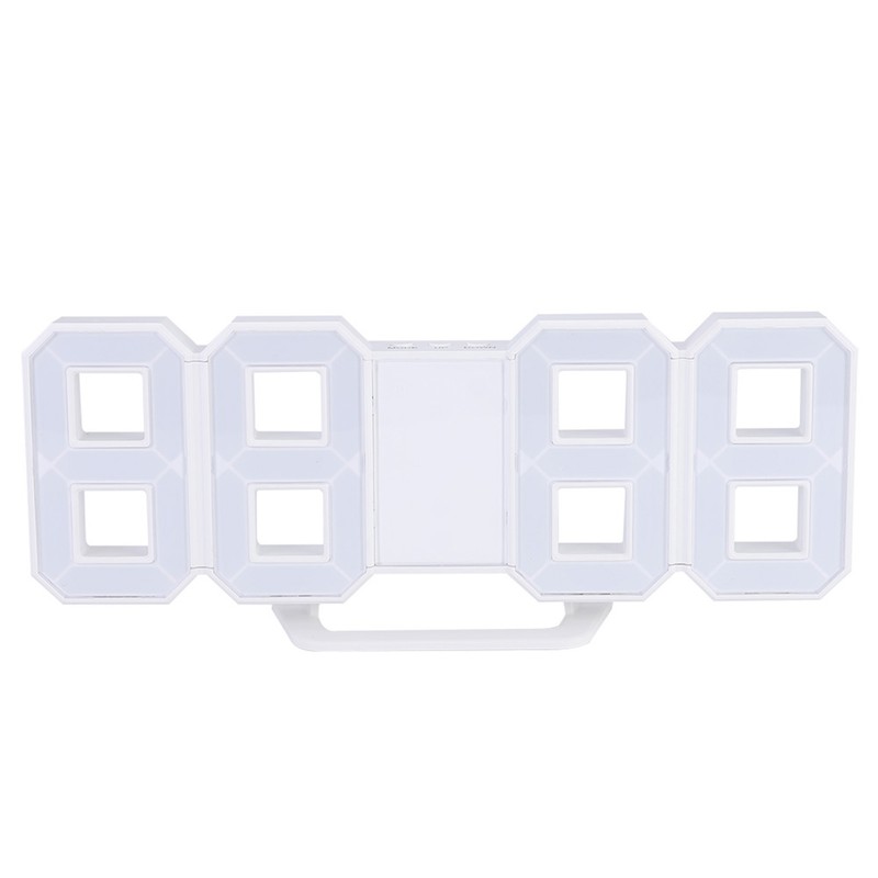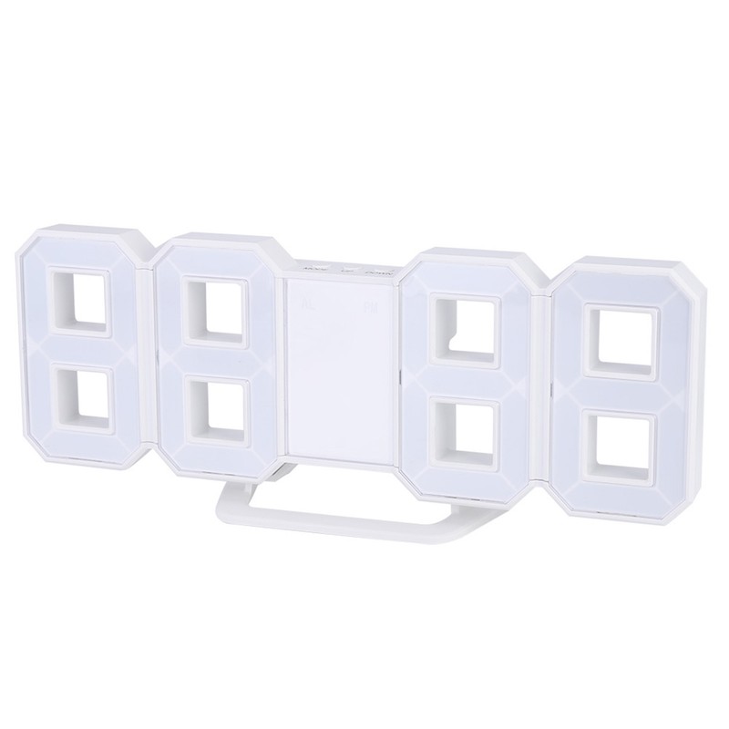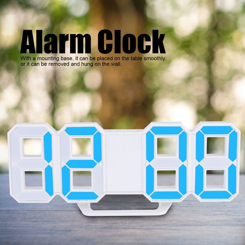 3D LED Digital Clock Bedroom Desktop Snooze Alarm Clock Home Decoration White CaseBlue