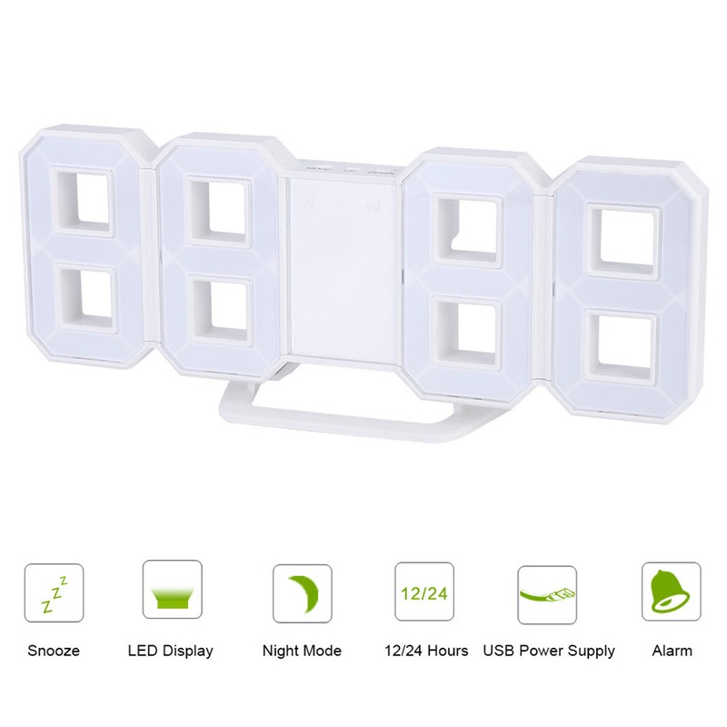 1、With LED light function, support brightness adjustment, convenient to view time at night. 2、This alarm clock supports the function of excessive sleep. It is humanized and suitable for people with heavy sleep. 3、With a mounting base, it can be placed on the table smoothly, or it can be removed and hung on the wall. 4、It is made of high density ABS material to ensure good durability and stability. 5、The time display format supports 12-hour and 24-hour system, which is suitable for families, bedrooms, offices, study and dormitories.