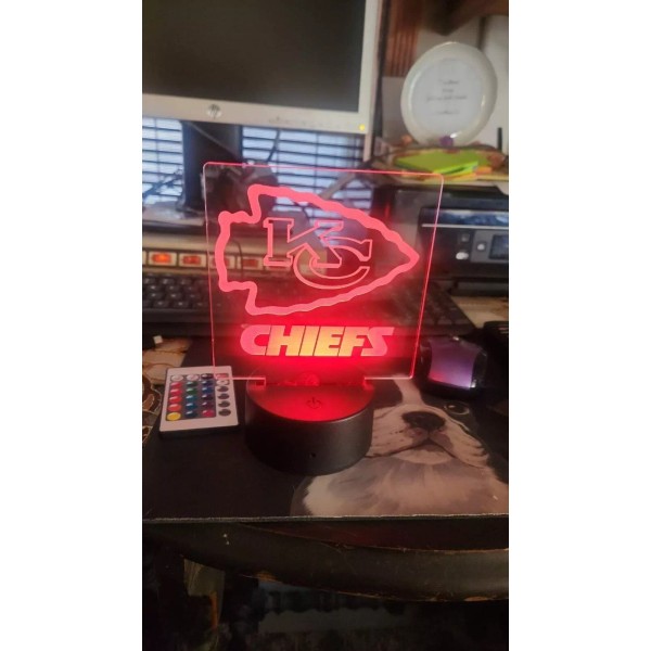 Add some brightness to your collection with this Chiefs Led Light. Crafted from high-quality acrylic material, this unique piece is perfect for any fan of the team or collector of sports memorabilia. Whether you're looking for a new piece to add to your collection or just want to show off your team pride, this lamp is a great choice. Ideal for any room in the house, it is perfect for illuminating your space while adding a touch of personality.