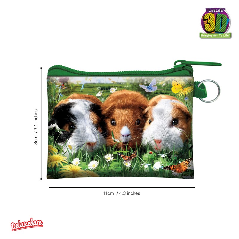 3D LiveLife Guinea Pig Wallet by Deluxebase. 3D Pet Wallet. Cash and Card Holder with Secure Zip with Artwork, Licensed by the Prestigious David Penfound, Green, Guinea Pig