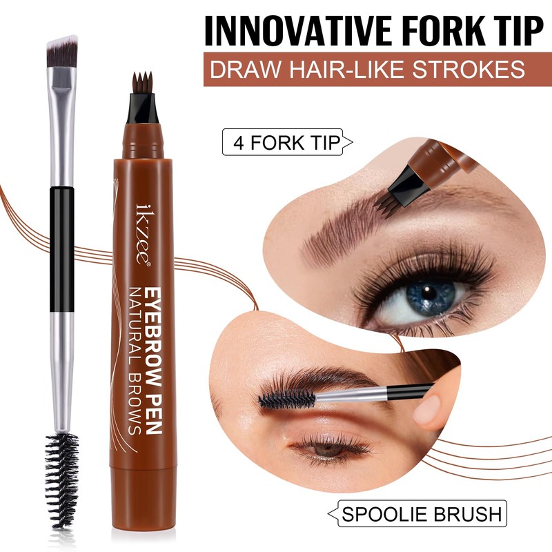 - 【Magical 4-Prong Brow Pen】2-in-1 double-ended eyebrow pencils for women has precise ultra-fine brush-tip to create tiny hair-like strokes for natural finish, 4-prong fork-tip brow applicator for shading, filling in sparse areas and blend color into brows.