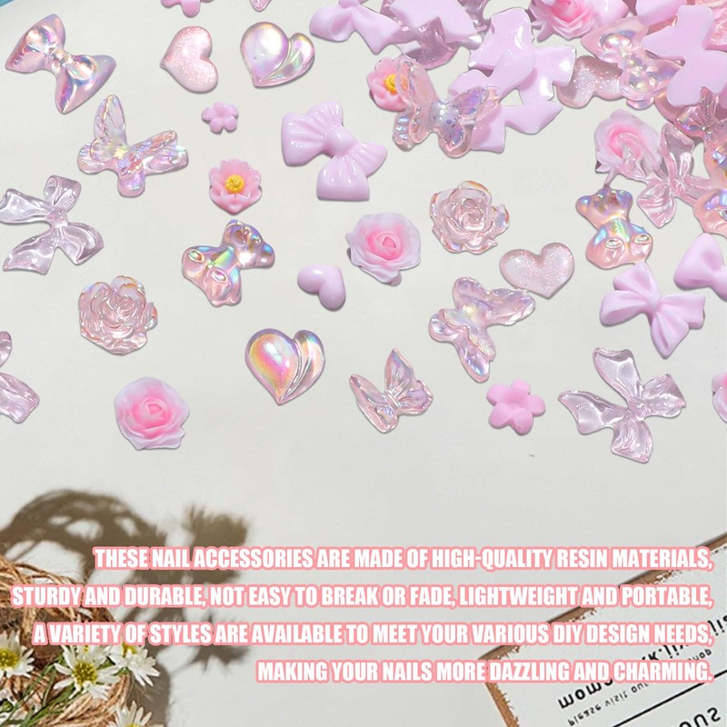 3D Nail Charms,400PCS Multi Shapes Flower Flower Bow Bear Moon Heart Nail Art Charms Nail Rhinestones Charms,Resin Nail Charms for Nail Art Decorations DIY Crafts Jewelry Accessories (Pink)