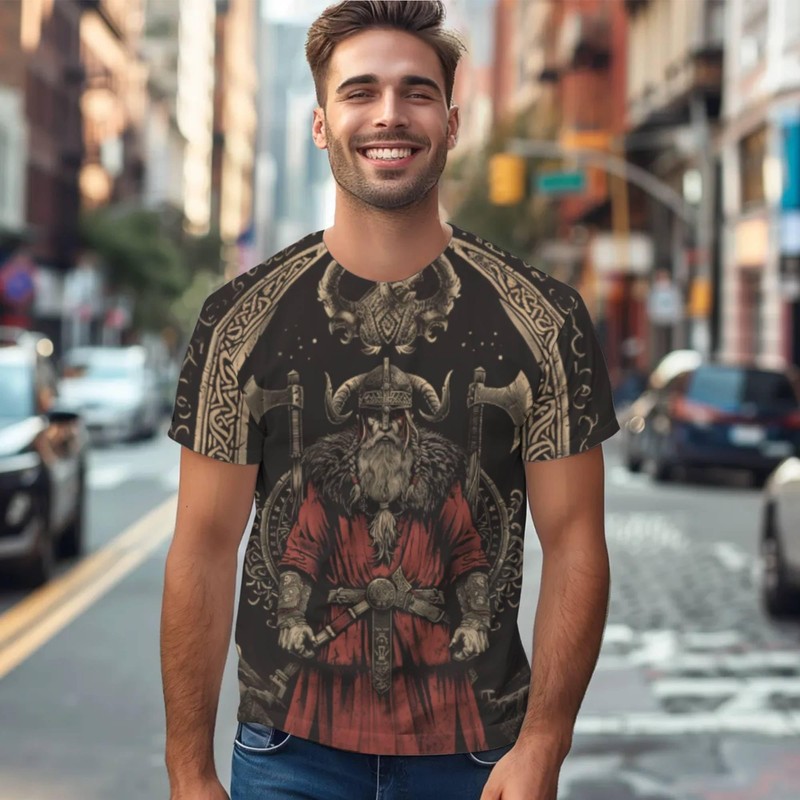 3D Pattern Print T-Shirt Viking Warrior Design Breathable Cool Lightweight Flexible Easy to Match Diverse and Stylish Perfect for Casual Wear Size XL