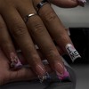 3D Press on Nails Coffin Fake Nails with Glue Glossy Valentine Glue on Nails Gradient Purple Pink Static Nails White False Nails Heart Star Nails Press on Acrylic Nails Square Stick on Nails for Women