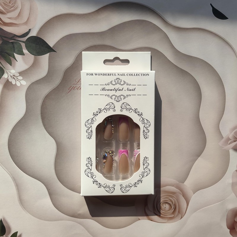 2: Select the right size of the nail and take the right amount of glue stickers or adhesive tape on the inside of the selected nail plate.