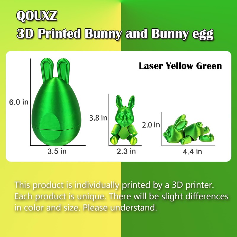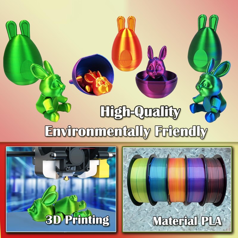 - 【High quality】3D printed bunny and 3D printed bunny eggs are made of high-quality 3D printing material PLA and are precisely 3D printed to ensure realistic details, high quality and durability. Open the bunny egg and unleash the magic of the bunny toy. A 3D printed bunny is born from a mysterious bunny egg. Showing the unique charm of 3D bunnys, the gradient color 3D printed rabbit with eggs is like a beautiful work of art