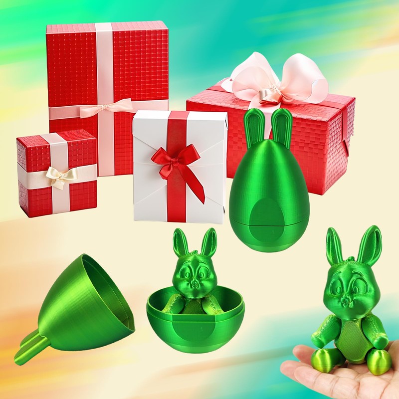 - [More surprises] 3D printed bunny and bunny egg set, including a boy’s toy bunny and a mysterious bunny egg, a double surprise. The unique combination of 3D printed bunny and surprise egg toy is the perfect choice for crystal bunny lovers. bunny toys are great for collecting. Children's bunny statues inspire creativity and imagination. As a fidget toy, the bunny fidget toy promotes relaxation and reduces stress during leisure time
