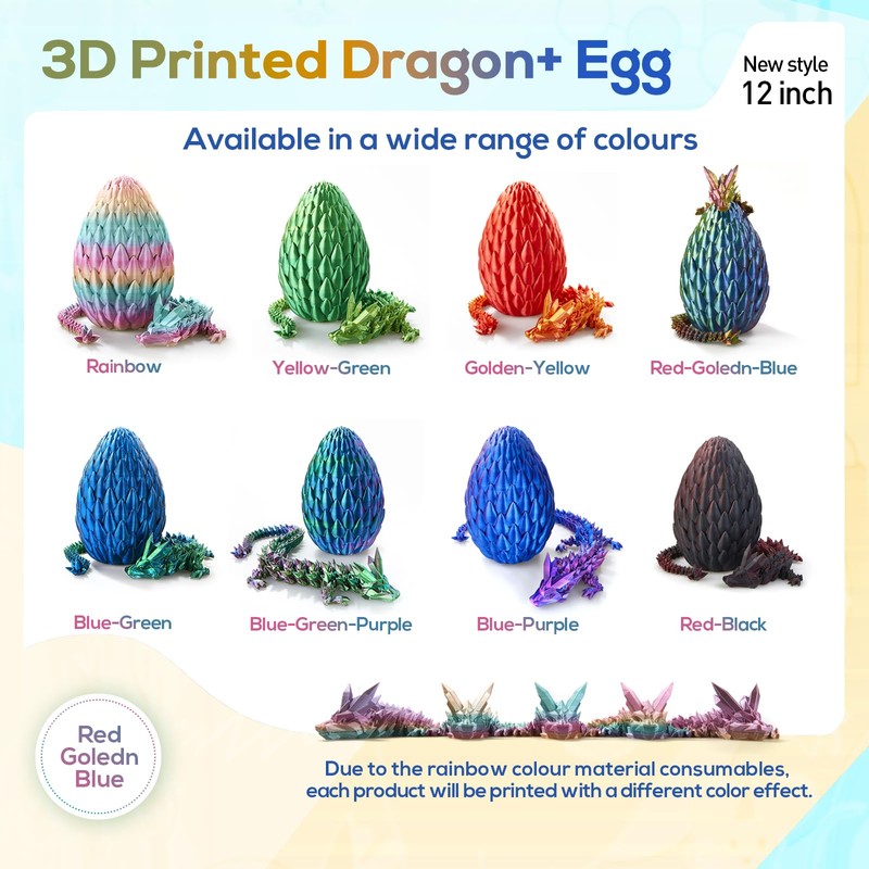 • High-grade raw materials: Both dragons and dragon eggs are printed with high-grade silk PLA raw materials. PLA raw materials are healthy and environmentally friendly, and suitable for children over six years old.