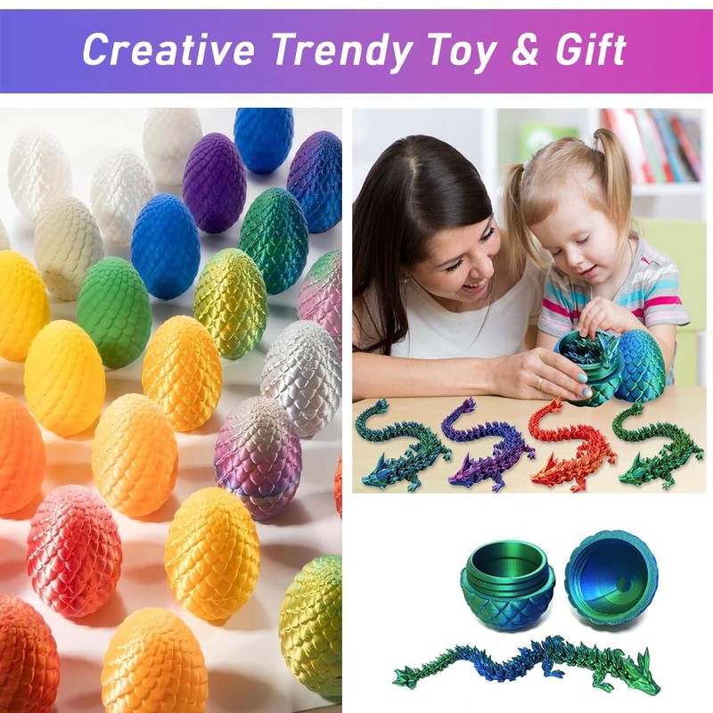 3D Printed Dragon Egg, 12 inch Crystal Dragon Fidget Toys, Full Articulated Dragon Crystal Dragon in Egg, Adults Fidget Toys for Autism ADHD (Combo of 3Pcs)