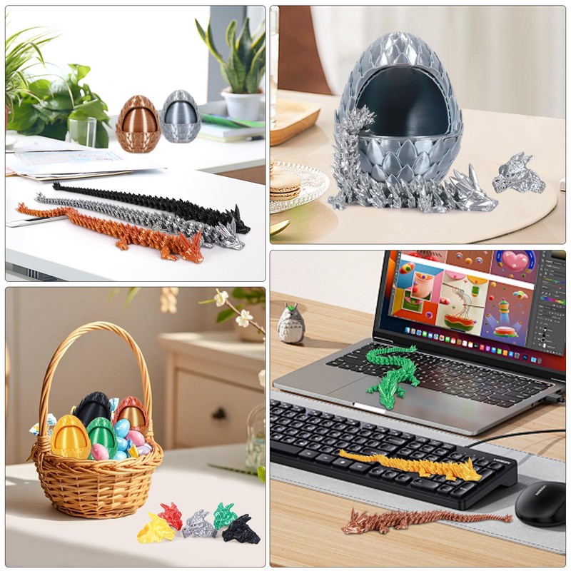 - 【Unique design and eye-catching colors】The product set includes 3D-printed dragon eggs with dragon inside, Each dragon egg opens to reveal mysterious dragon and dragon ring inside. With high-quality 3D printing, the products feature smooth, vibrant, and glossy colors. The colors shift depending on the viewing angle, making them lively.