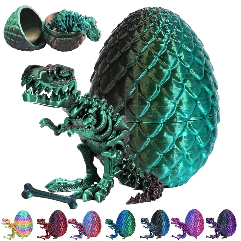 3D Printed Dragon Egg Mysterious Dragon Toy Realistic Movable Dragon Figures Surprise Easter Dragon Eggs Home Decor (Green Black)