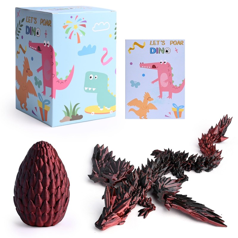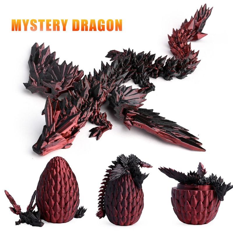 3D Printed Dragon Egg with Dragon, Crystal Dragon in the Egg Dragon Figures, 3D Printed Dragon with Wings, Realistic Mysterious Dragon Toy, Emotional Joints Dragon with Egg (Red/Black)