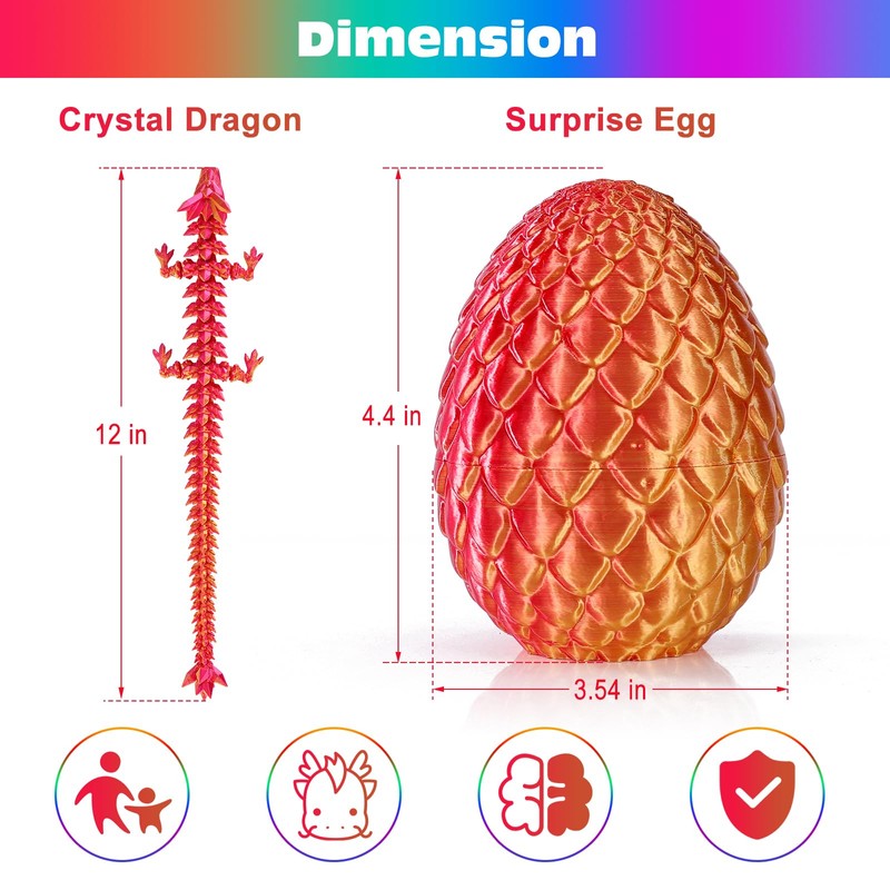 - 【Advanced 3D Printing】Crystal dragon with dragon egg is manufactured using advanced 3D printing technology, capable of presenting high precision and intricate detail.Our crystal dragon egg come in a wide range of colors, so you're sure to find what you're looking for in our store! 12 inch Dragon + 4.4 inch Egg