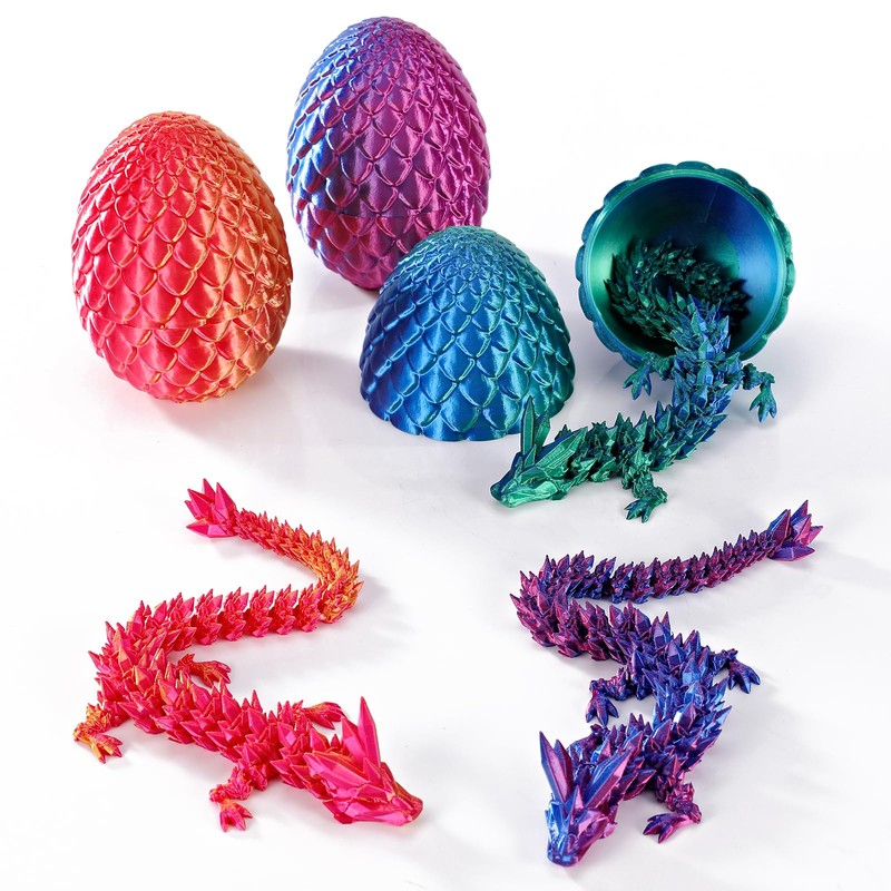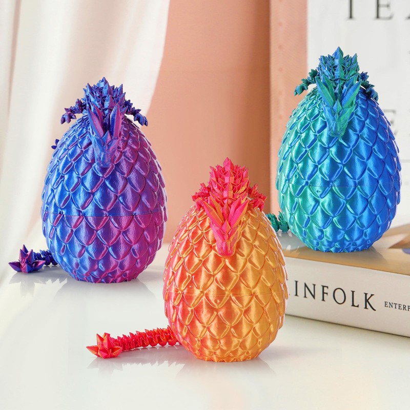 This Dragon egg is not your average toy, as it comes with a 3D printed Dragon flexible hidden inside the egg.