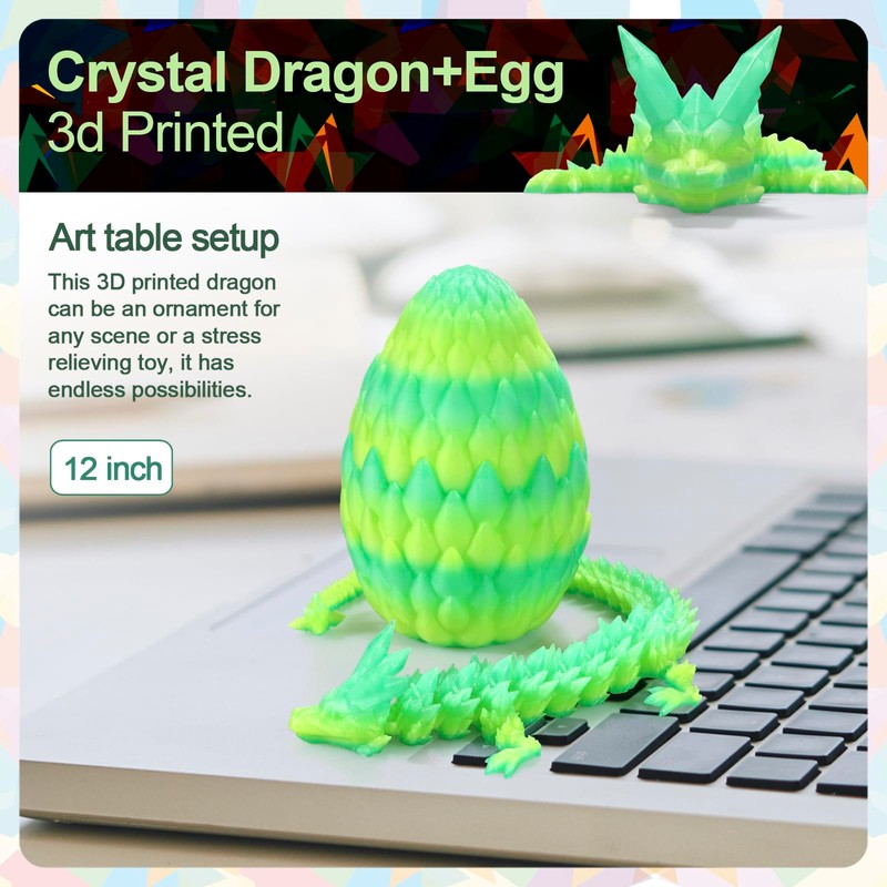 3D Printed DragonEgg, 12Inch Articulated DragonEgg with Dragon Inside, Adults Dragon Fidget Toy, Crystal Dragon Egg for Home Office Car Desk Decor Toys, Gift Given on Birthday. (Crystal Green)