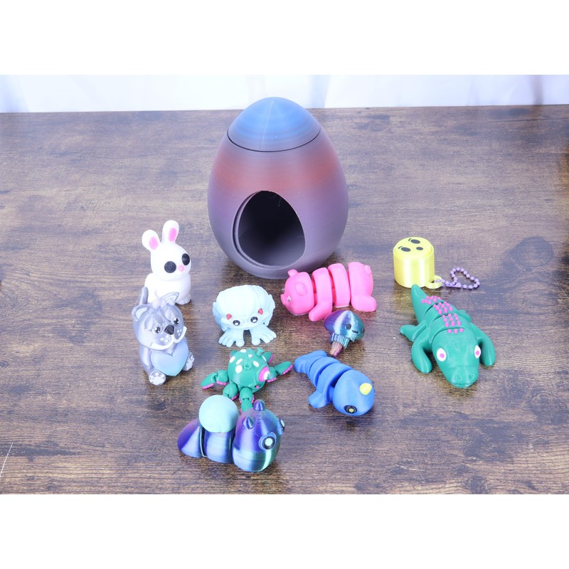 3D Printed Mystery Animal Fidget Pack, 10 Pieces, Fun and Unique Articulated Designs with Revolving Egg Easter