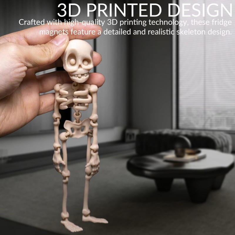 • 3D Printed Design: Crafted with high-quality 3D printing technology, these fridge magnets feature a detailed and realistic skeleton design.