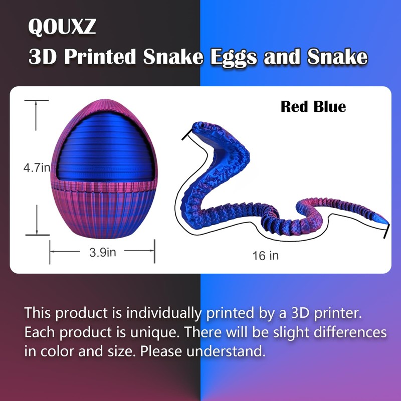 - Surprise gift: This novel and interesting 3d printed fidgets toys can be used as Easter gift bag fillers, the 3d printed viper toy is a great gift for birthdays, Children's Day, Easter, Halloween, Christmas, New Year, everyone receives Anyone who likes 3d printed snake in egg will like this 3d printed snake toy. 3d printed snake flexible snake toys Whether given to children or adults, 3d printed snake animals toys can bring surprise and joy.