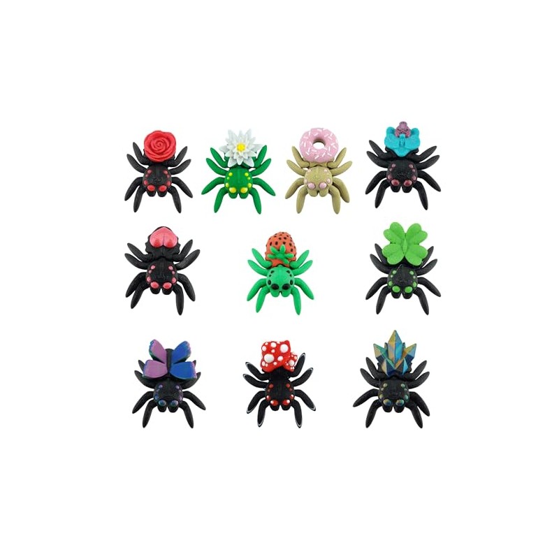 - Over 12 unique spider designs, each with its own distinctive look and charm. Colors do vary, pictures are for reference purposes. Not all spider designs are pictured.