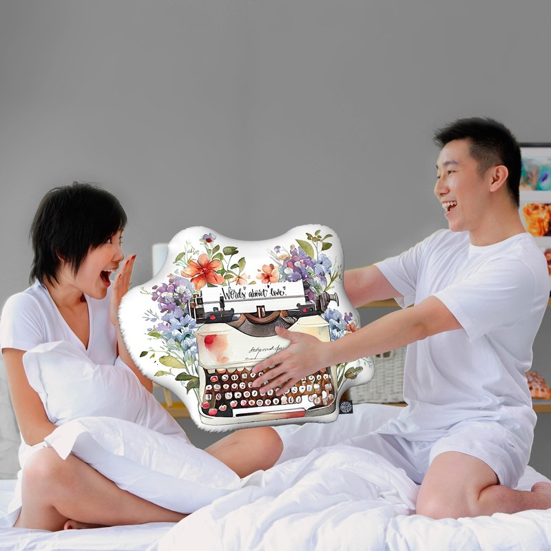 3D Printed Words Love Custom Pillow, Couple Pillow with Mix Flowers & TypeWriter Theme, Long Distance Relationship Girlfriend Gift Pillow, Customized Gift Love Pillow for Keepsake - 22" Medium