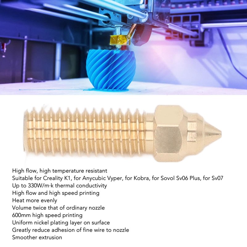• APPLICABLE MODEL: 3D printer nozzle kit includes 3 pieces brass extruder nozzle, possess high , high temperature resistant, suitable for Creality K1, for Anycubic Vyper, for Kobra, for Sovol Sv06 Plus, for Sv07