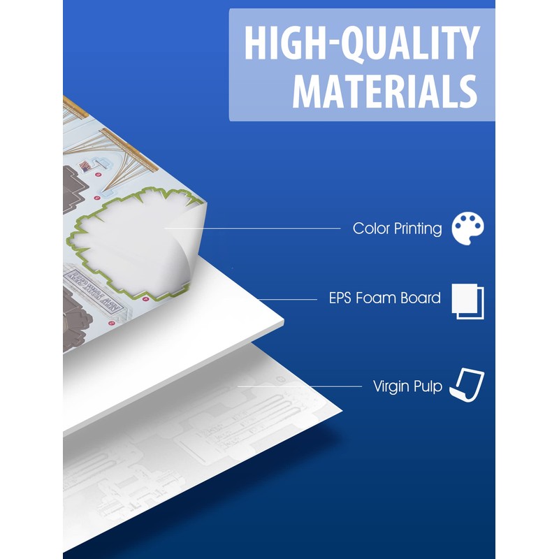 Made of paper and foam board, it is durable and easy to building. No tool and glue need.