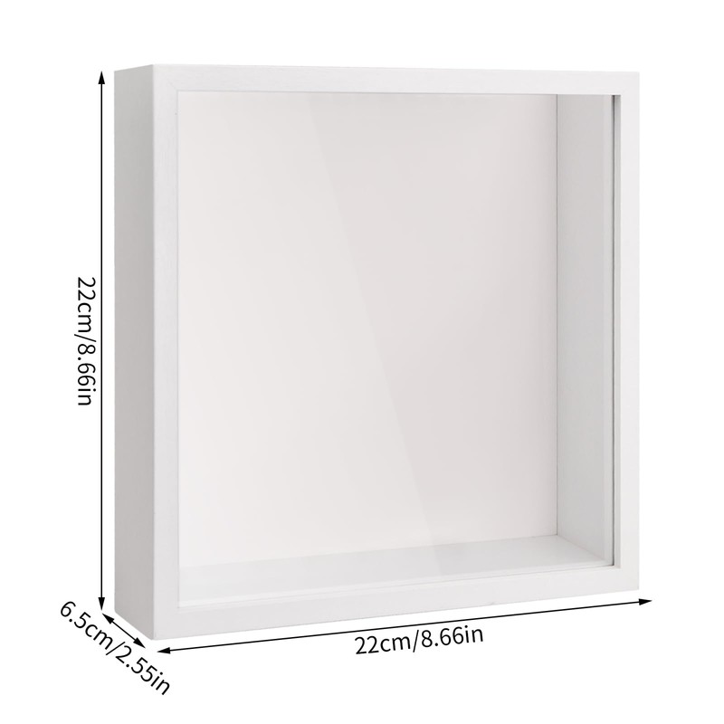 3D Shadow Box, Deep Display Box for Wall and Tabletop, Wooden Deep Box Frame Picture Frame for Memorabilia Medal Tickets Crafts Flower (White 22x22cm)