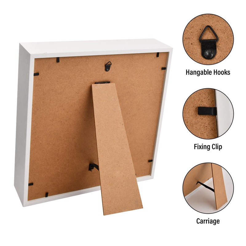 - 【Package Contents】: The package includes a photo frame, available in black and white. The frame has an internal depth of 5 cm and is available in two sizes. External dimensions are 22x22x6.5 cm and internal dimensions are 20.3x20.3x5 cm. External dimensions 27x27x6.5 cm; internal dimensions 25.4x25.4x5 cm.