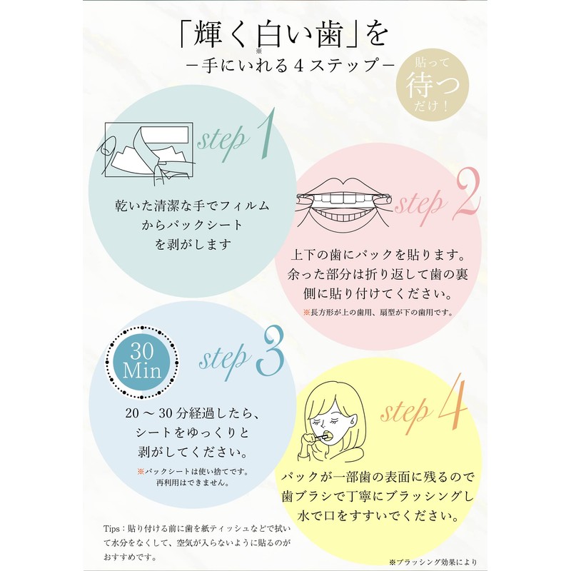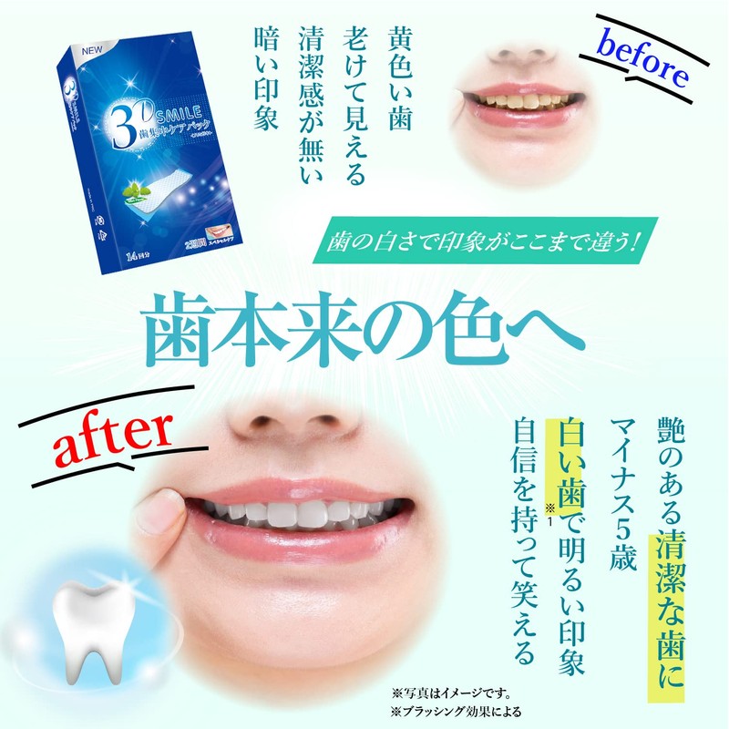 - Self-Whitening at Home: Whitening is attracted to attention every year in beauty regardless of gender, but whitening with a dentist will not be annoyed by time or money. That's why many people want to try home whitening with 3D Smile. Whitening makes you have a smile on your face, and you hear a lot of smile. We recommend oral care with whitening sheets at home. It is hygienic and easy to carry and comes in individual packaging so it can be easily self-whitening wherever you are traveling or business trips. You can use it at any time as you like while taking a bath or watching TV. Comes with a Japanese instruction manual so you can use it with confidence
