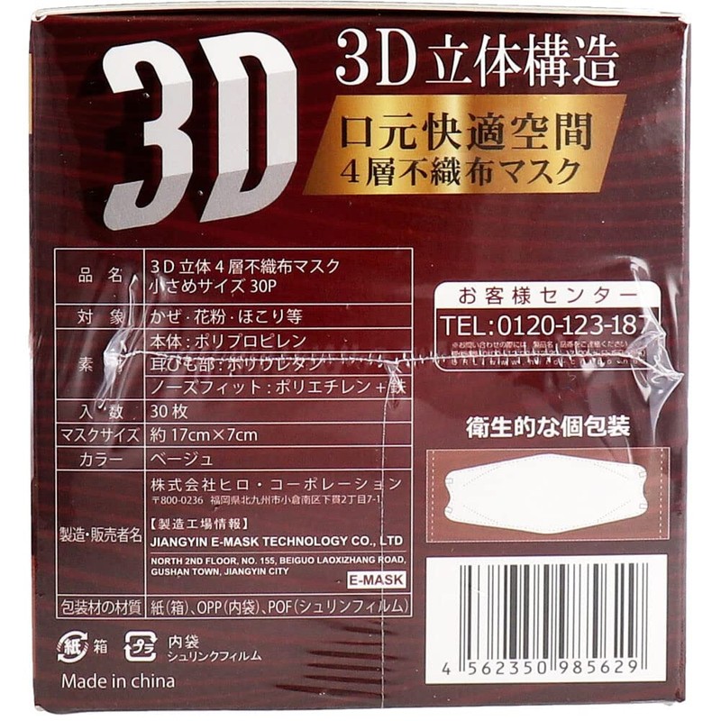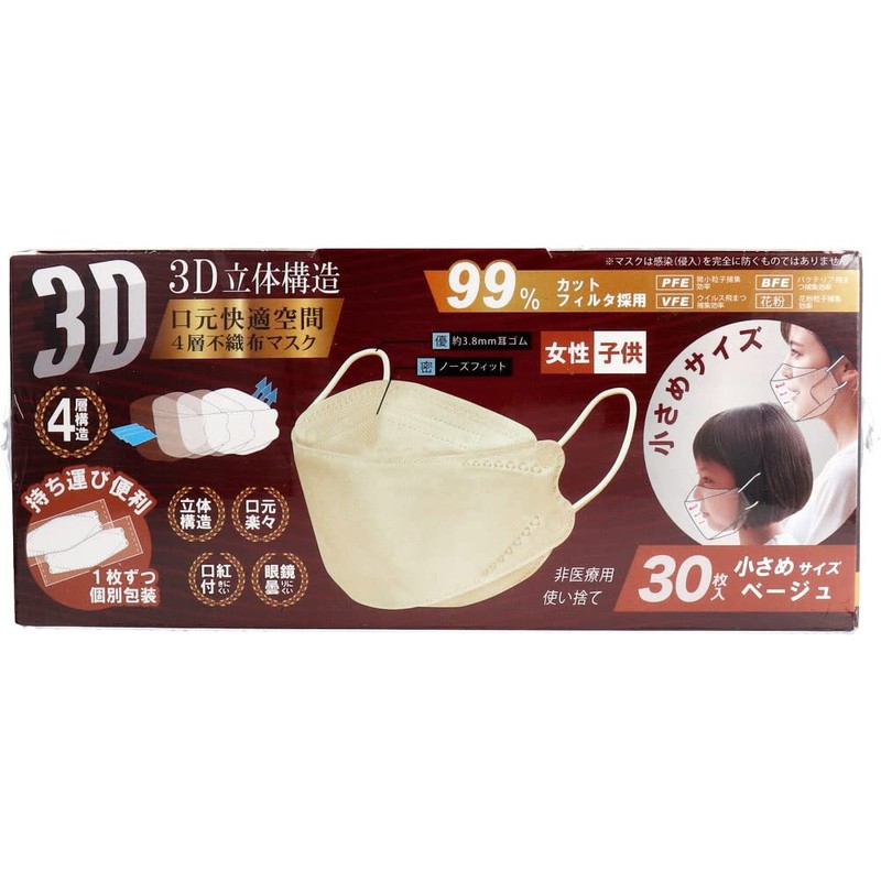 3D Structure, 4-Layer Non-woven Mask, For Women and Kids, Small Size, Individually Packaged, Beige, Pack of 30