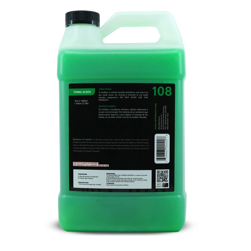 3D Towel Kleen - Premium Microfiber Towel Laundry Detergent - Cleans, Restores & Maintain Towel Life - Low Foam, No Residue Technology 1 Gallon