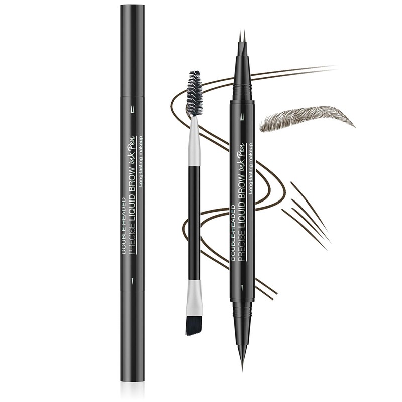3D Waterproof Eyebrow Pen Dual-Ended for Natural Brows, Micro-Fork-Tip & Brush-Tip for Hair-Like Strokes, Long-Lasting Smudge-Proof Formula, Perfect for Contouring & Filling. Easy Application, Brown