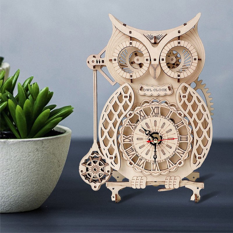 - ROEOLNIL Owl Clock Model Kit is not only an artistic home decor after finished, it also tells time accurately with quatz movement. Building this ROEOLNIL wooden puzzle kit is a rewarding and fun project for teens and adults to put together.