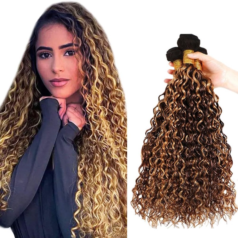 - 【Hair Bundle Type And Color】Water Wave Human Hair Bundle. 1BP427 Bundles,Brown and Honey Blonde Ombre Bundles.