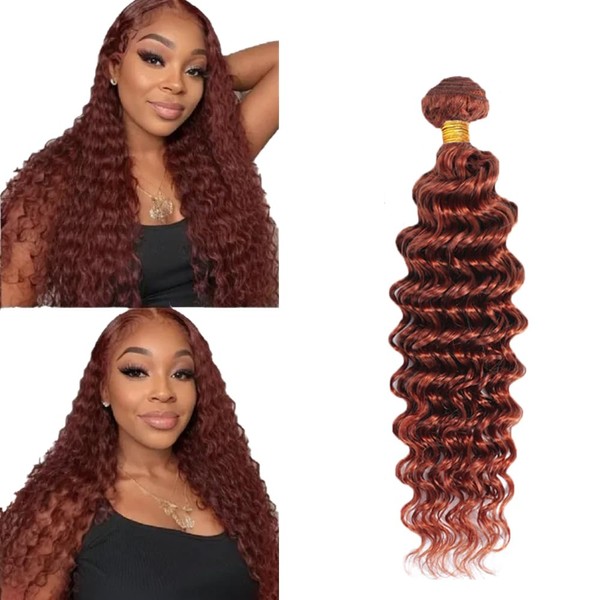 • 【Hair Bundle Type And Color】Deep Wave Human Hair Bundle. Color #33 Copper Red Bundles,Reddish Brown Bundles.