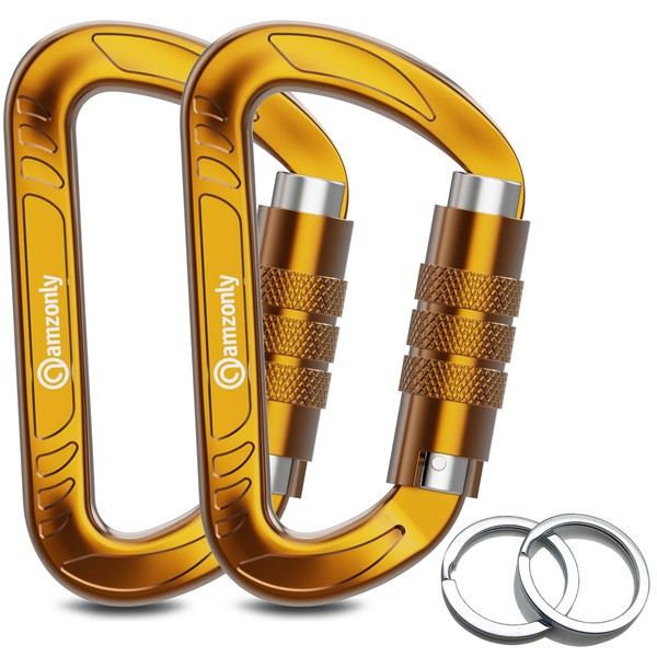 3inch Auto Locking Carabiner Clips Heavy Duty, 12KN /2697lbs Lightweight keychain carabiners, Sturdy Twist Lock Caribeeners for Camping Hiking Hammock Swing Backpack, dog leash and Harness etc, Gold