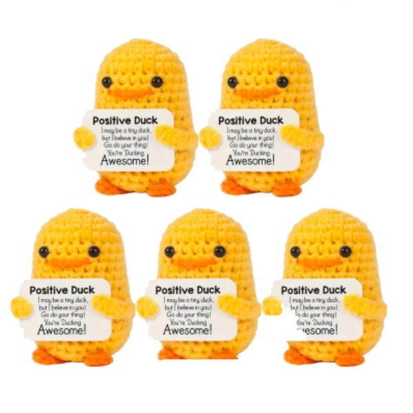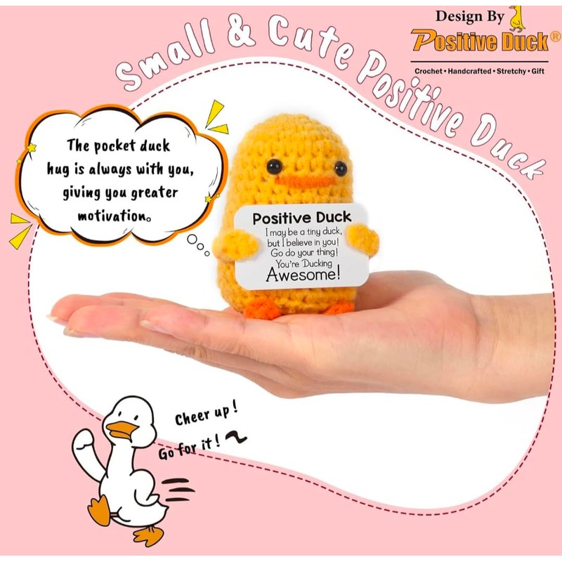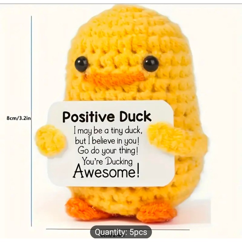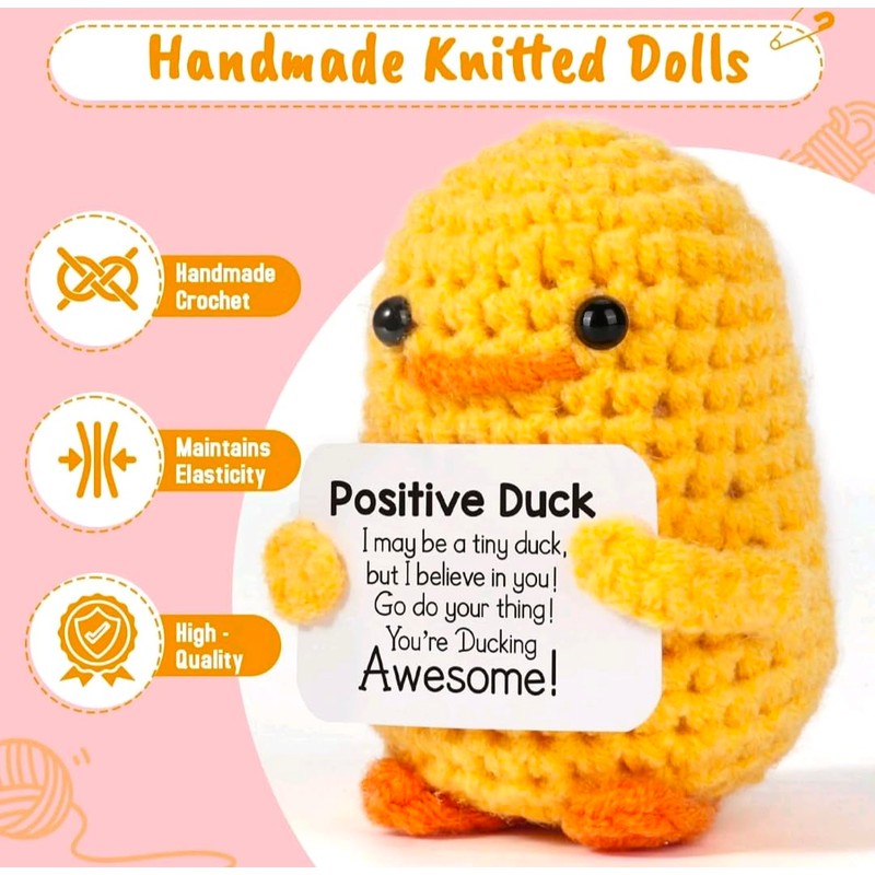 - Easter Cute Yellow Crochet Duck Inspirational Message Card, Positive Vibes Gift for Friends & Home Decoration, Knitted Plush