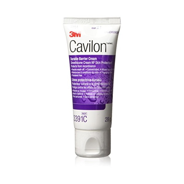 Product Description3M Cavilon Durable Barrier Cream, 28 g Tube.IndicationsProtection of at-risk skin from damage associated with incontinence and related symptoms such as anal itch. It may also be used to moisturise and condition dry skin.This product is safe to use on both intact and injured skin for example associated with incontinence.IngredientsWater (Aqua), Diisooctyl Adipate, Acrylate Terpolymer, Cocos Nucifera (Coconut) Oil, PPG-15 Stearyl Ether, Glycerin, Isopropyl Palmitate, White Mineral Oil (Paraffinum Liquidum), Trimethylsiloxysilicate, Paraffin, Dimethicone, Phenoxyethanol, Benzoic Acid, Dehydroacetic Acid, Magnesium Sulfate.DirectionsAs part of your daily skin care routine, apply a small amount twice a day, every day.Steps:1. Use on clean, dry skin2. Apply a pea sized amount at a time to cover the affected area. A little goes a long way3. Apply the cream, morning and night. No need to reapply after every wash.Safety WarningKeep it out of the reach of ChildrenBox Contains1 x 28 g tube and user leaflet
