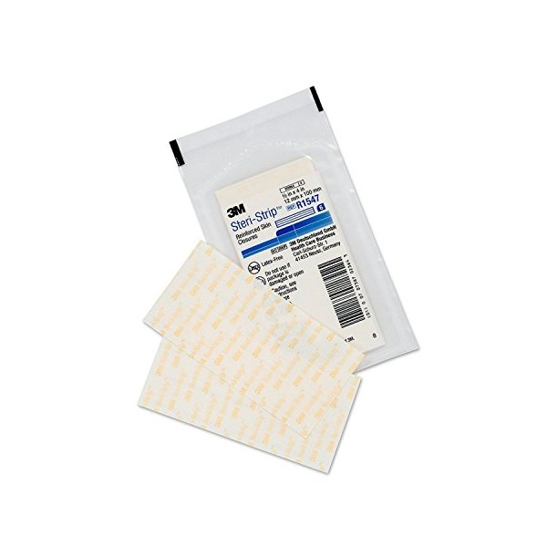 Product descriptionA pressure sensitive hypoallergenic adhesive. Superior cosmetic results compared to suturing, eliminating scarring due to cross-hatching. Lower rate of infection and over-all morbidity when compared to sutures and/or staples. Fast application. Comfortable to wear. Hypoallergenic and reduces likelihood of skin irritation. Sterile. Size: 12mm x 100mm. Ref: R1547 Pack of 10 envelopesDirectionsThe 'directions' for using 3M Steri-Strip Reinforced Skin Closures can be inferred from the information provided on the external website. According to the 'bullet_point' field, these skin closures 'Secure wounds and provide wound support and increase the tensile strength of the wound, compared to sutures'. They also 'Help improve cosmetic outcomes by reducing scarring and the risk of infection, compared to sutures and staples, with less tissue trauma and better cosmetic outcomes'. Additionally, they are 'Comfortable to wear compared to sutures' and 'Hypoallergenic'. Based on this information, the 'directions' for using 3M Steri-Strip Reinforced Skin Closures could be inferred as follows: 1. Clean and prepare the wound area. 2. Apply the skin closures to the wound, ensuring that they are properly aligned and secure. 3. Monitor the wound and replace the skin closures as needed. However, it is important to note that this is an inferred interpretation of the 'directions' based on the information provided, and the actual 'directions' may vary depending on the specific product or manufacturer guidelines.