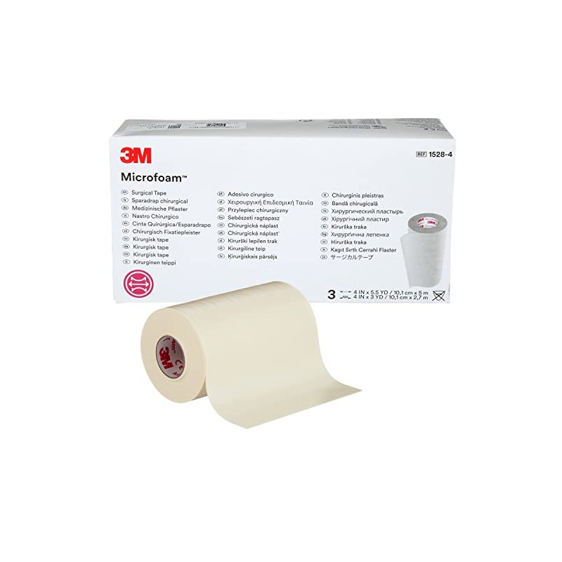 3M™ Microfoam™ Surgical Tape 1528-4, 4 inch x 5 1/2 yard (10cm x 5m) Stretched, 3 Rolls/Box