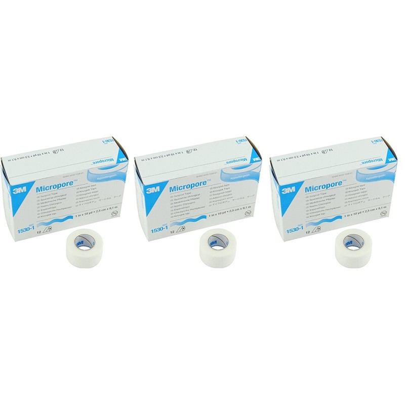 3M Micropore Paper Tape - White, 1" x 10yds CtNMNk, 3Pack (Box of 12)