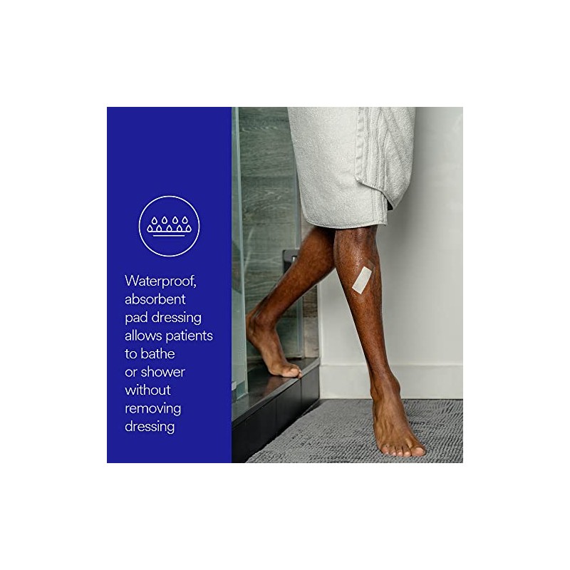 - Practical for patients – Waterproof film lets patients bathe or shower without removing dressing.