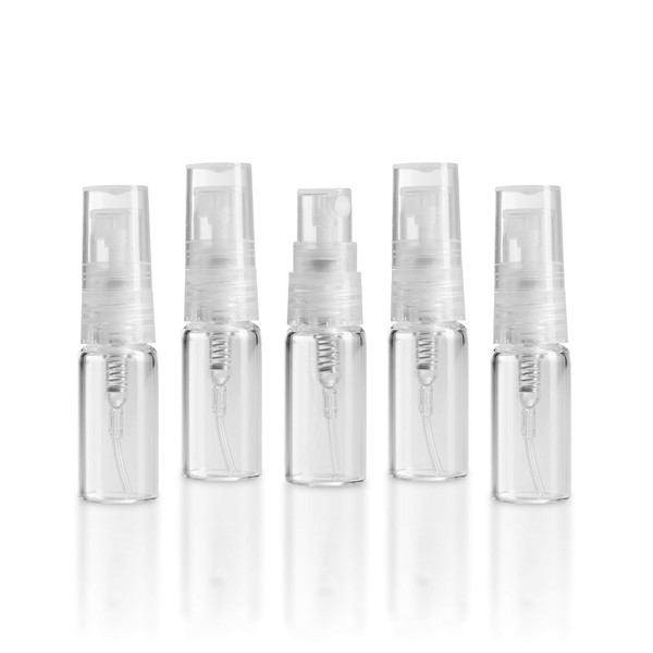 3ML Clear Glass Vials with Clear Fine Mist Spray Top (5 Pack)