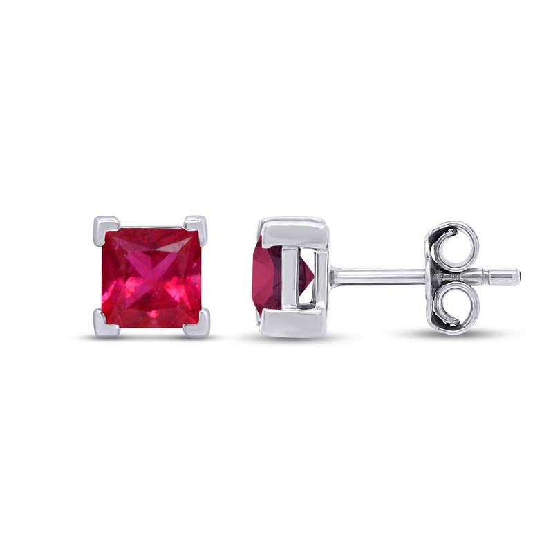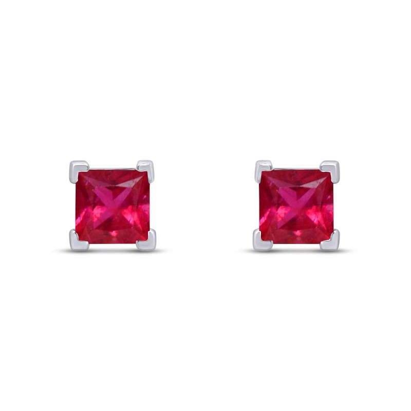 3mm Princess Cut Simulated Ruby Stud Earrings in 14k White Gold Over Sterling Silver