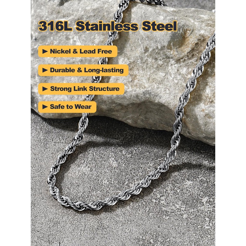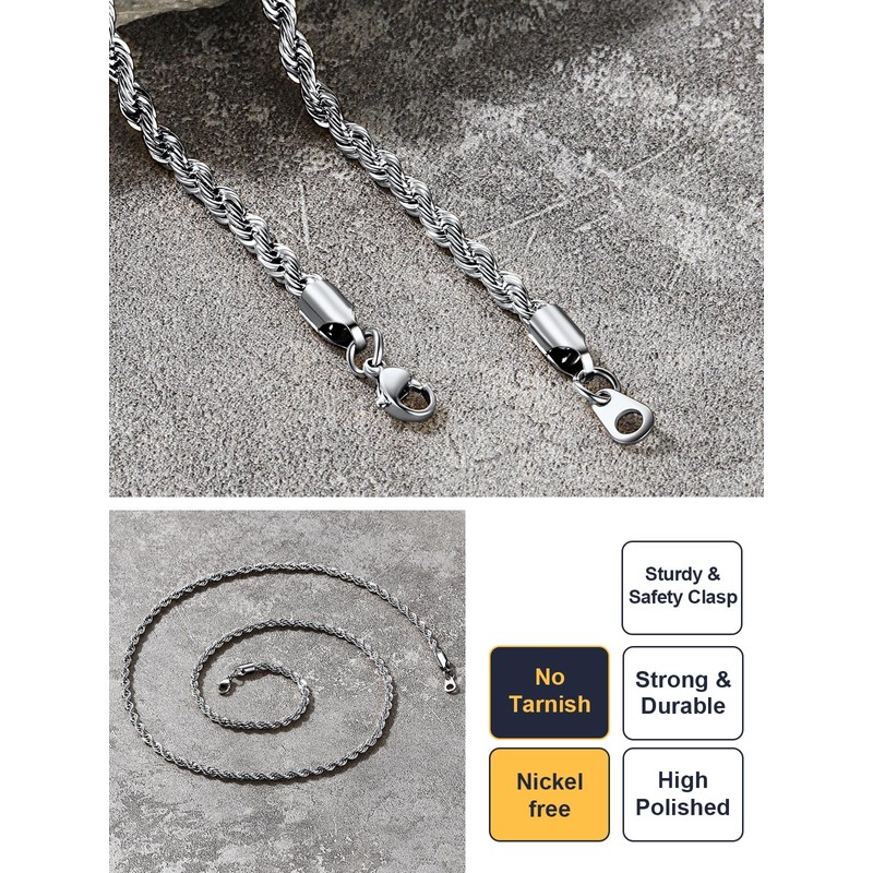 3mm Stainless Steel Rope Chain Men Cord Necklace