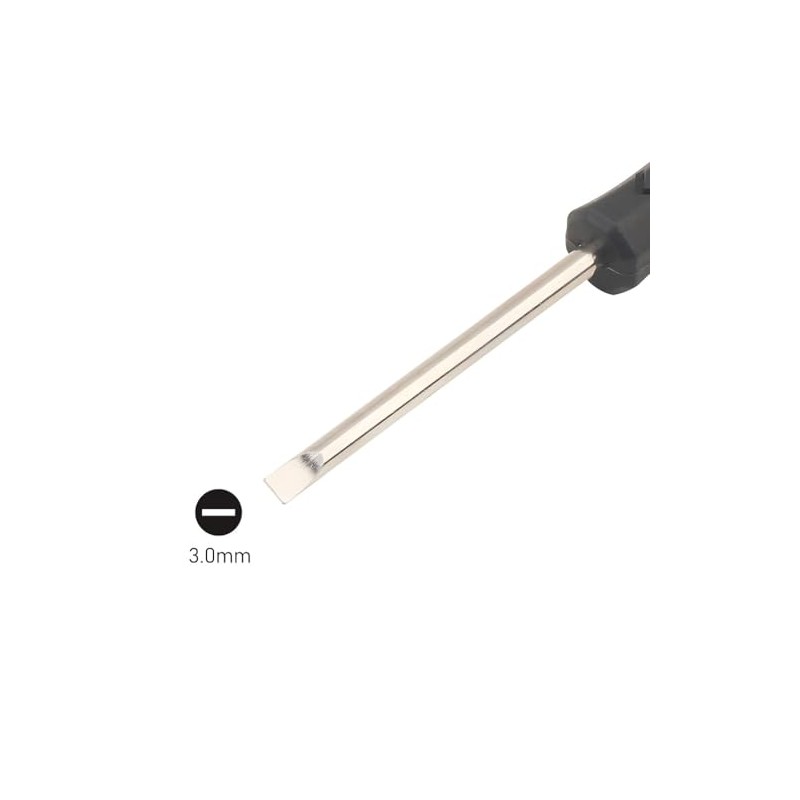 • Precision 3.0mm Slotted screwdriver. Full length: 100mm, Shaft length: 50mm.