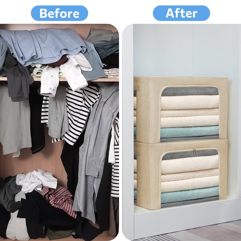 - LARGE CAPACITY STORAGE BOX: 3*36L Large storage space for storing a variety of things. Suitable for your seasonal clothing, bedding, blankets, comforters, other clothes, shoes, book, toys, holiday decorations, etc. These storage organizer box can be placed in the bedroom, office, closet, study, attic or other places you want.